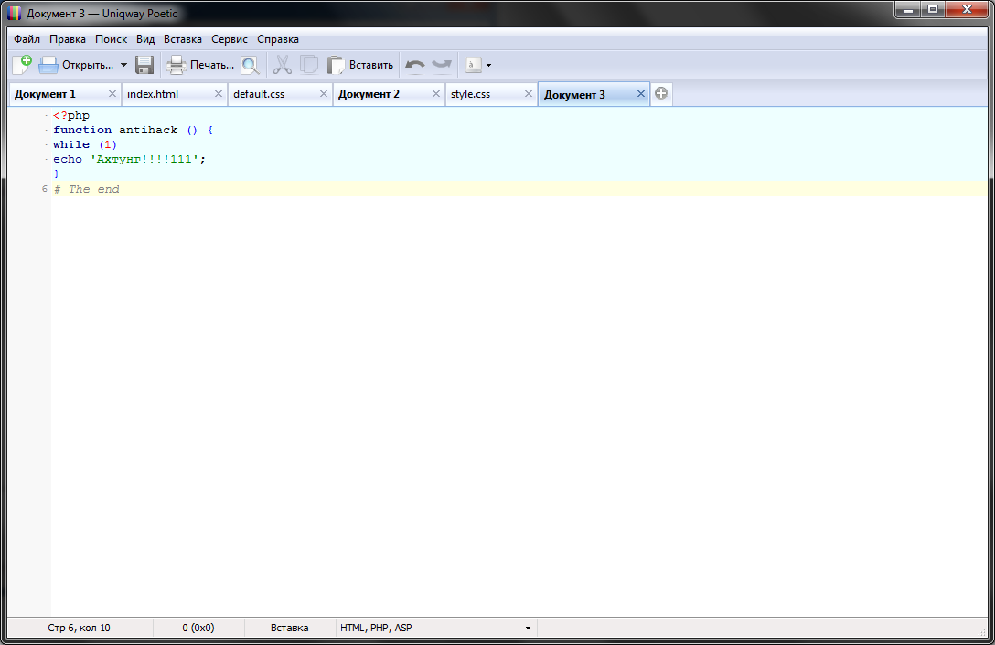 Кстате нравится ещё одна фишка, то что программа не продолжает строку если она длиннее ширины проги, а переносит код на другую строку!!