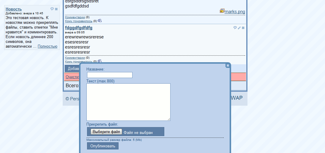 Это будет панелька для различных форм ввода. В нашем случае это будет форма добавления новости.