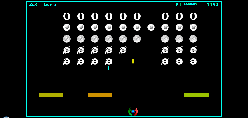 Мой вариант знаменитой игры Space Invaders. Есть бункеры, звуки, бонусные тарелки, возможность сбивать вражеские снаряды своими и т.д. )