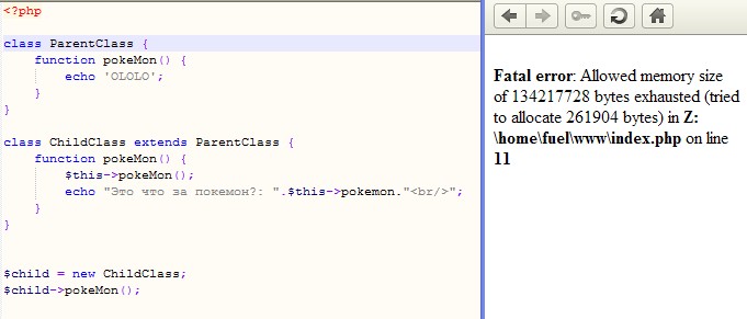 AlkatraZ, Разыменовывание тут не при чем. Я о parent::pokeMon().