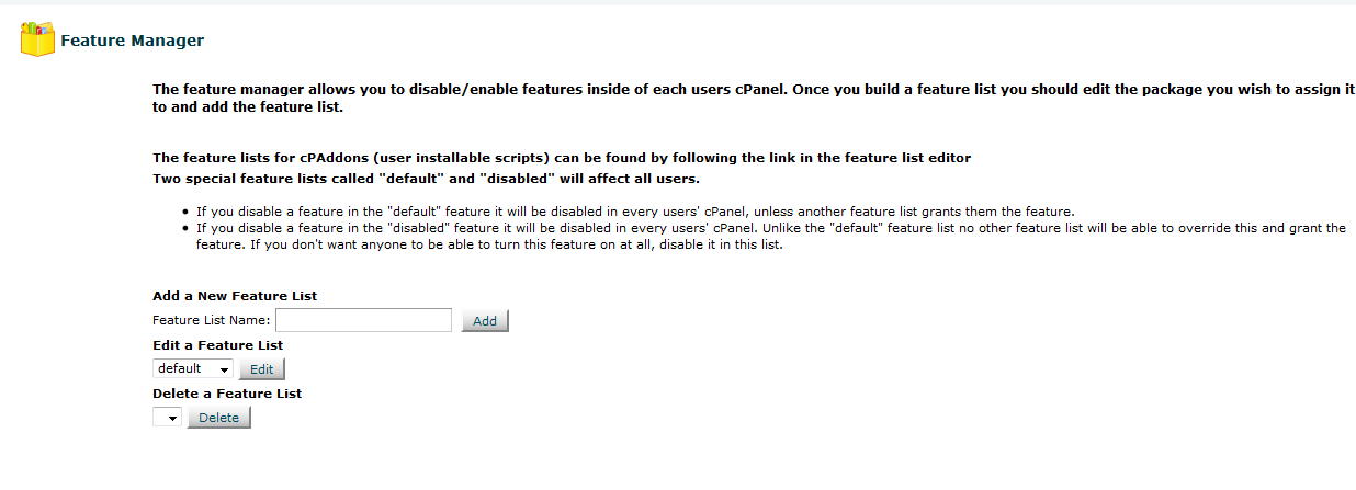 Windler, Main >> Packages >> Feature Manager