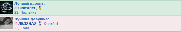 CenturiON (29.03.2011/08:50)Это делается легко, выбираешь с помощью запроса мужчин с большей кармой, и так же женщин.