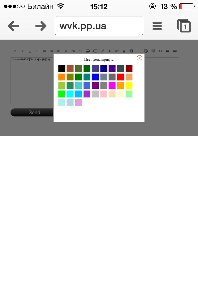 у меня не пашет, нажимаю на ббкод и ничего не происходит просто обновляется страница, сижу с opera Mini с Sony Xperia M