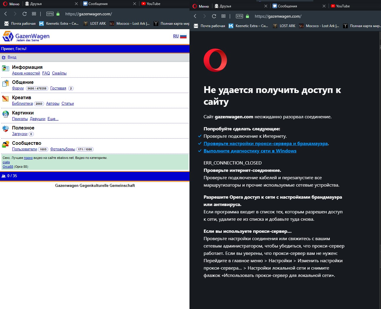 Уже с неделю немогу зайти на газик, чо такое, Олег?