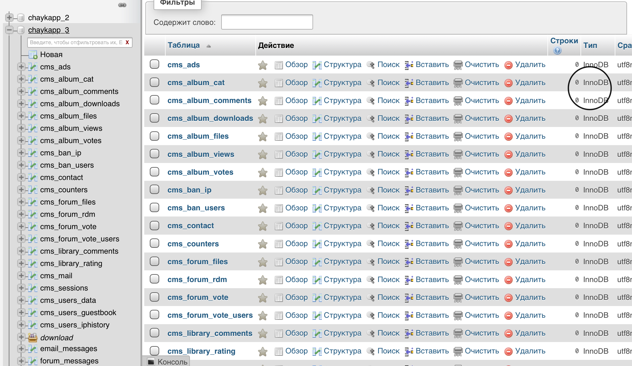 Kiriyan, а зайди в phpmyadmin посмотри тип таблиц правда стоит myisam как пишет поддержка или там innodb?
