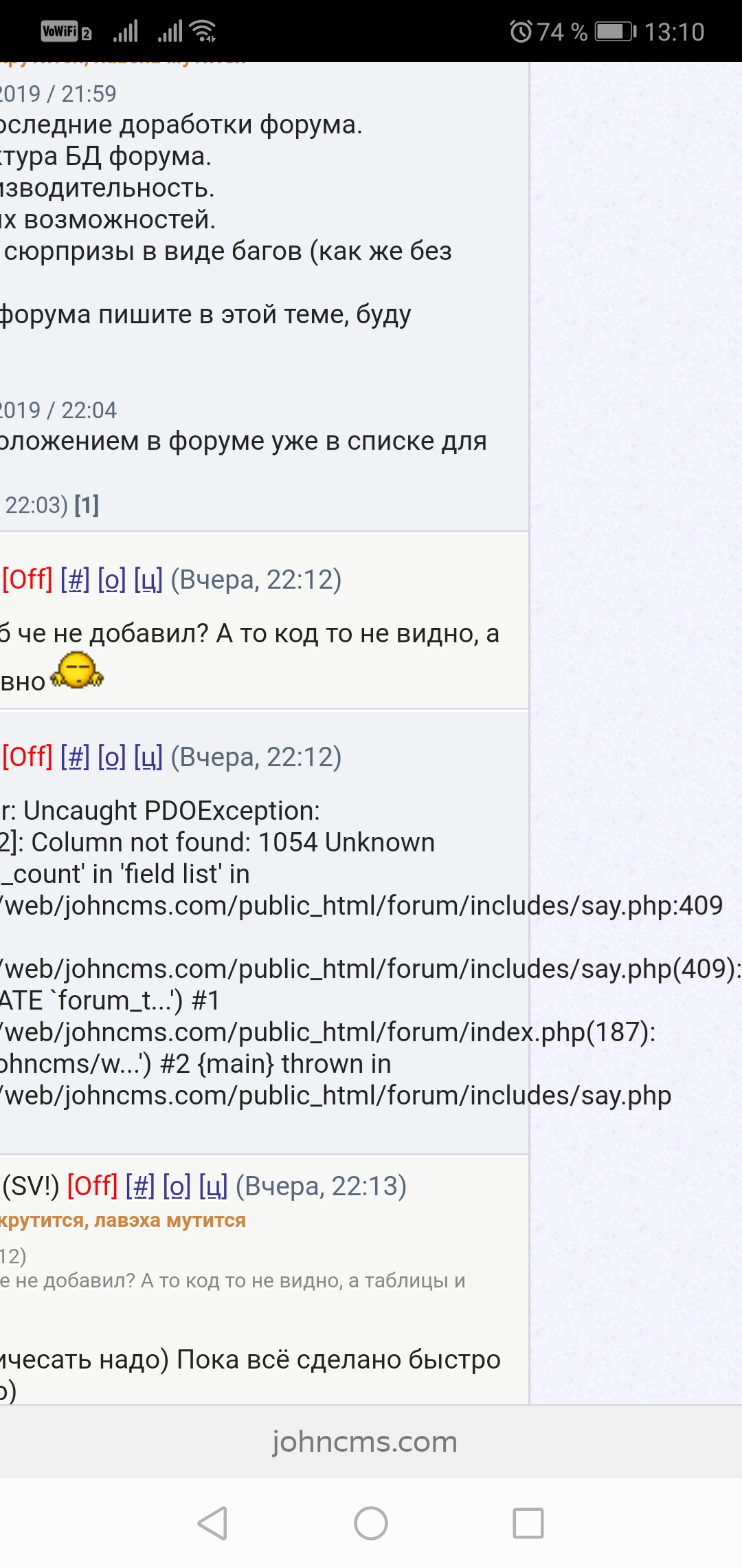 Ссылки на некоторые посты слетели http://johncms.com/forum/index ... 49609