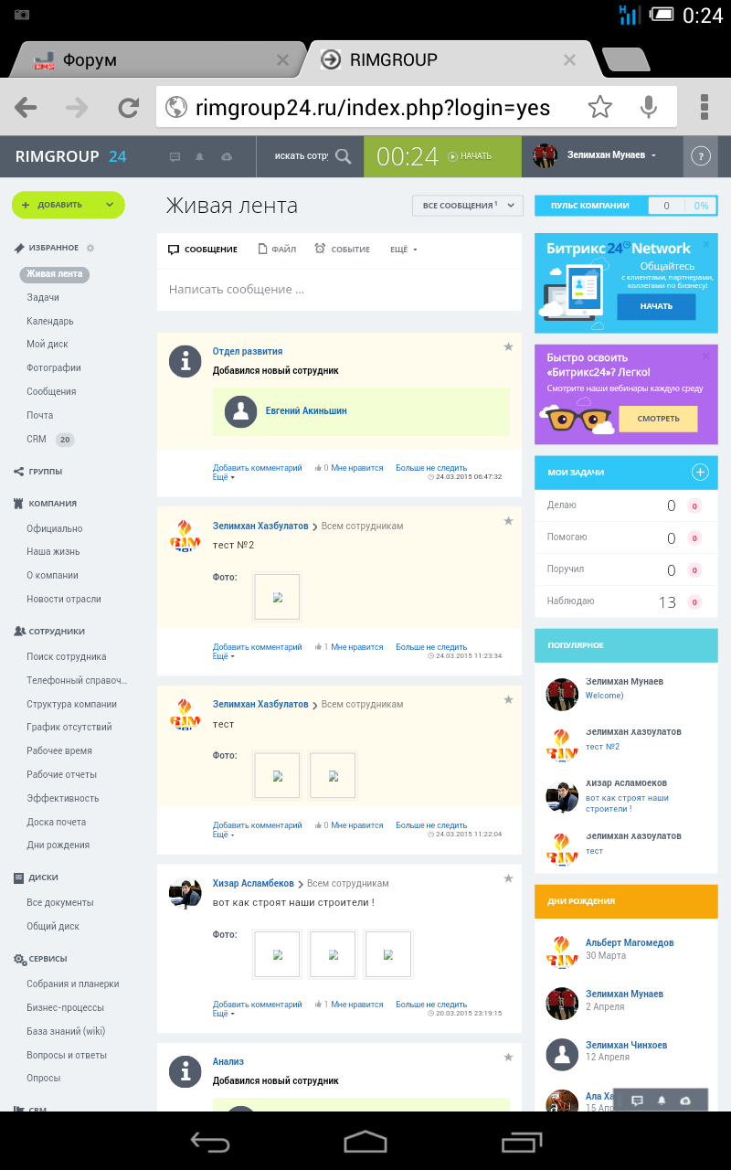 Simba, Вообщем у меня в общем диске (обменник битрикс24) есть файлы, но я никак не могу их открыть.... Дооолго загружается страница и в итоге выдает ошибку... Также при добавлении картинок на "живой ленте" не появляются превью картинки! Покажу скрин..
