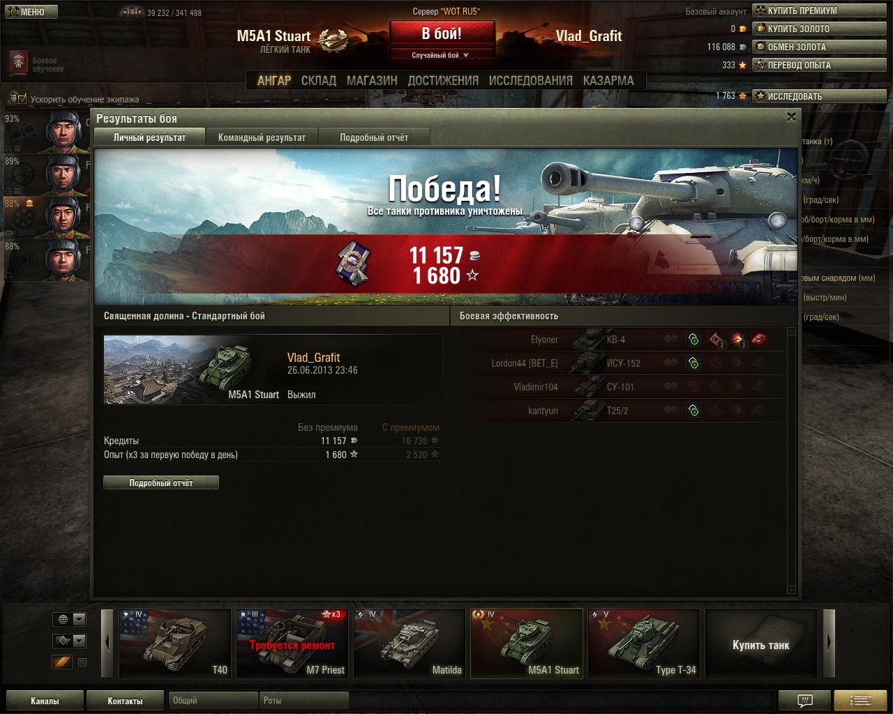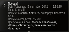 Во, нашел старенький результат своего боя, эх))) Щас бы за такое сто кусков кредитов дали)) 10 фрагов кстати))