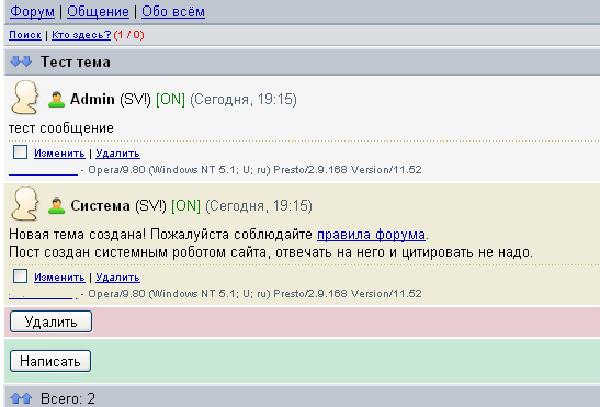 При создании новой темы автоматически создаётся второе сообщение с напоминанием о правилах форума и ссылкой на них.