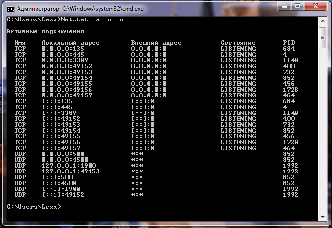 Netstat -a -n -o