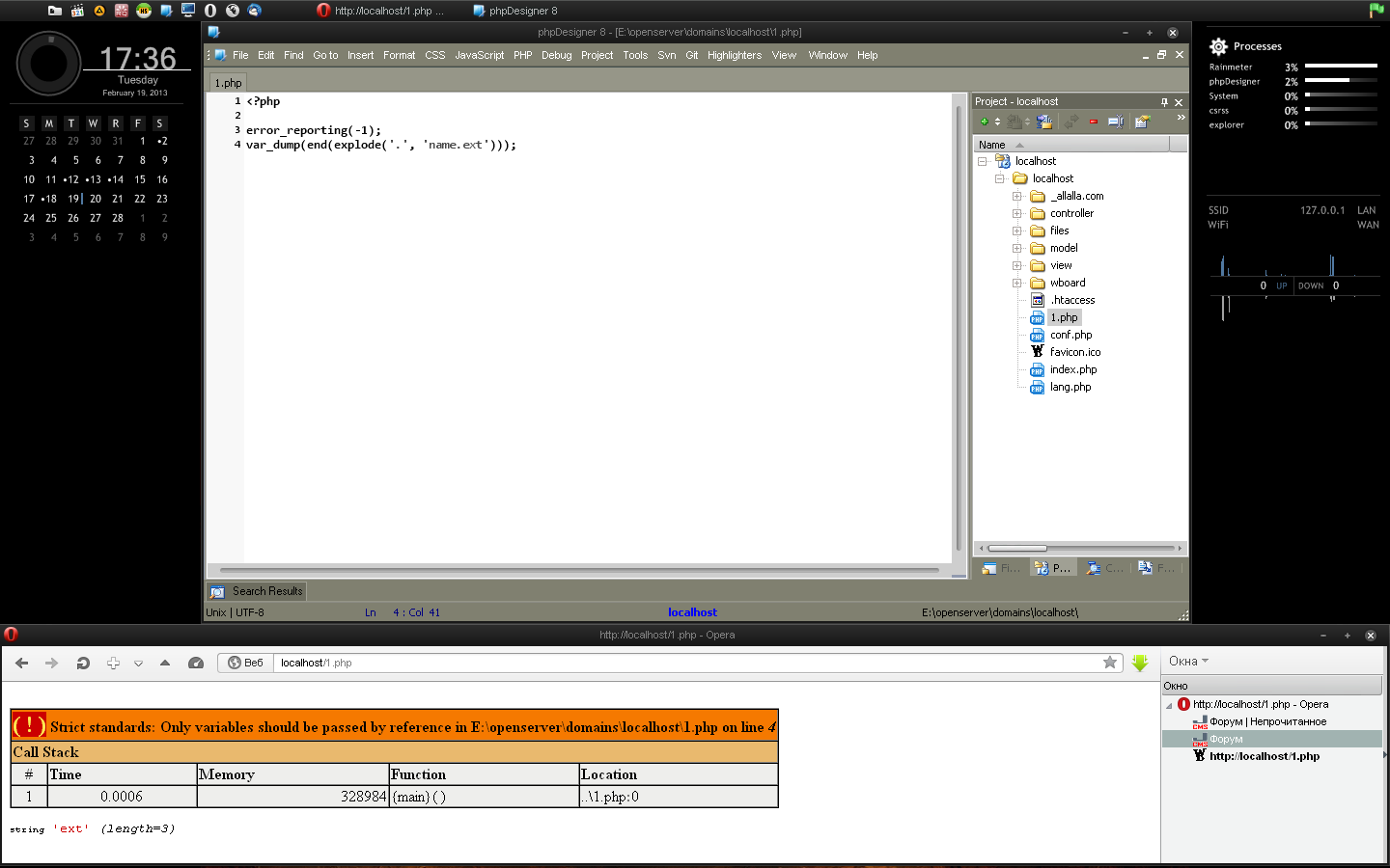 echo end(explode('.', $f));